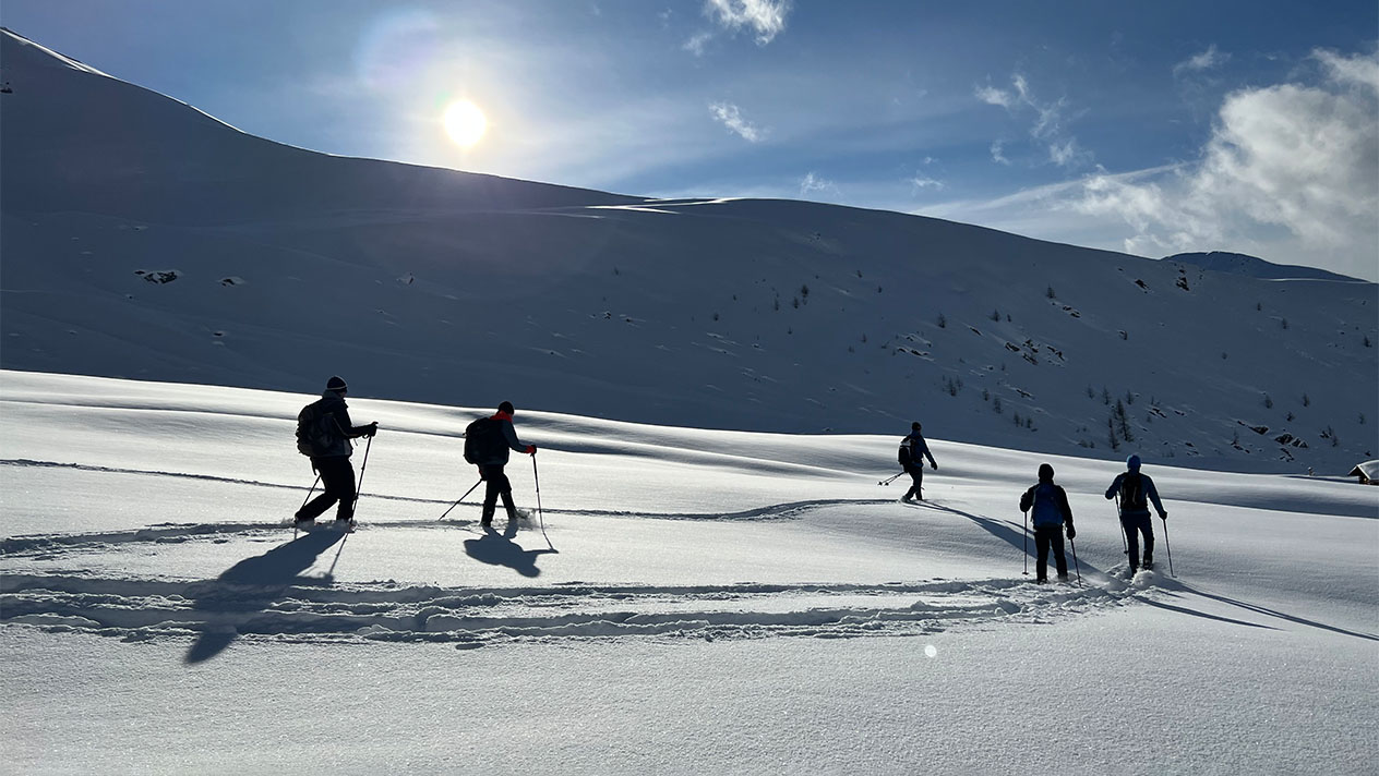 Nach diesem Fortgeschrittenenkurs bist du in der Lage bei der Tourenplanung aktiv mitzudenken, kennst die typischen Lawinenprobleme und Risikofaktoren und kennst die bei einem Notfall einzuleitenden Sofortmassnahmen. In diesen drei Tagen kannst du deine Kenntnisse im Schneeschuhwandern erweitern und bei der Tourenplanung aktiv mitwirken. Du interessierst dich für die Materie Schnee und die richtige Interpretation des Lawinenbulletins? An diesem Wochenende vermitteln wir dir in Theorie und Praxis die wichtigsten Grundlagen der Tourenplanung, Lawinenkunde und den Umgang mit der Sicherheitsausrüstung.