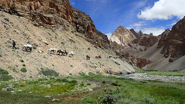 Durch das wilde Markha-Tal und vorbei an kleinen Dörfern ziehen wir über den 5000 Meter hohen Pass Zalung Karpo La in das wunderschöne und mystische Tal von Kharnak. Viele Legenden ranken sich um diese einsame Gegend, welche von einigen Nomadenfamilien mit ihren grossen Ziegen- und Yak-Herden durchstreift wird. Diese Nomaden werden wir besuchen. Daher ist diese Reise eine äusserst abwechslungsreiche, auf welcher wir in kurzer Zeit verschiedene «Gesichter» von Ladakh kennenlernen. Das Trekking ist sehr spannend, während der ersten Tage passieren wir etliche kleine Dörfer, danach sind wir in einem praktisch menschenleeren Gebiet unterwegs.
