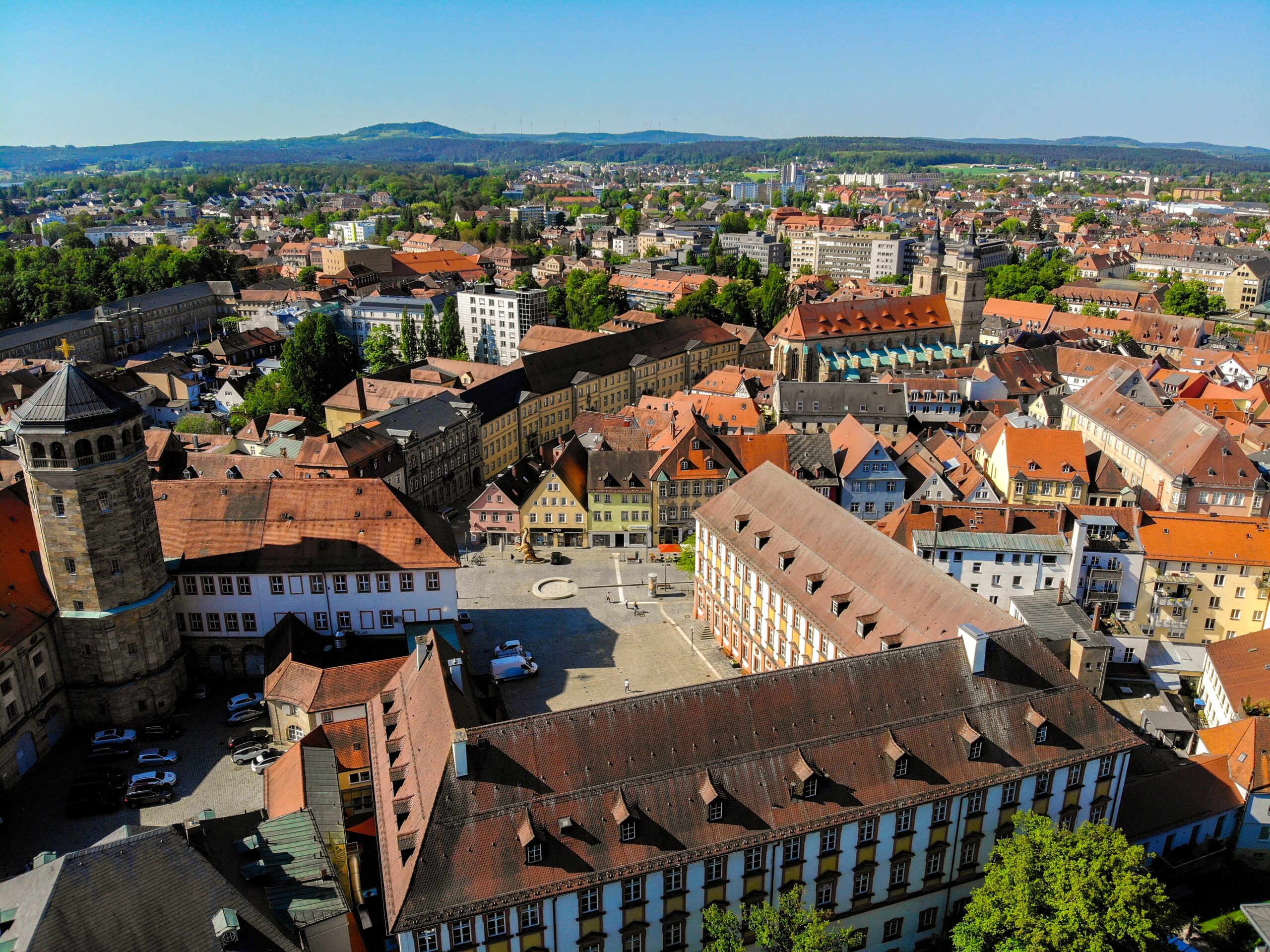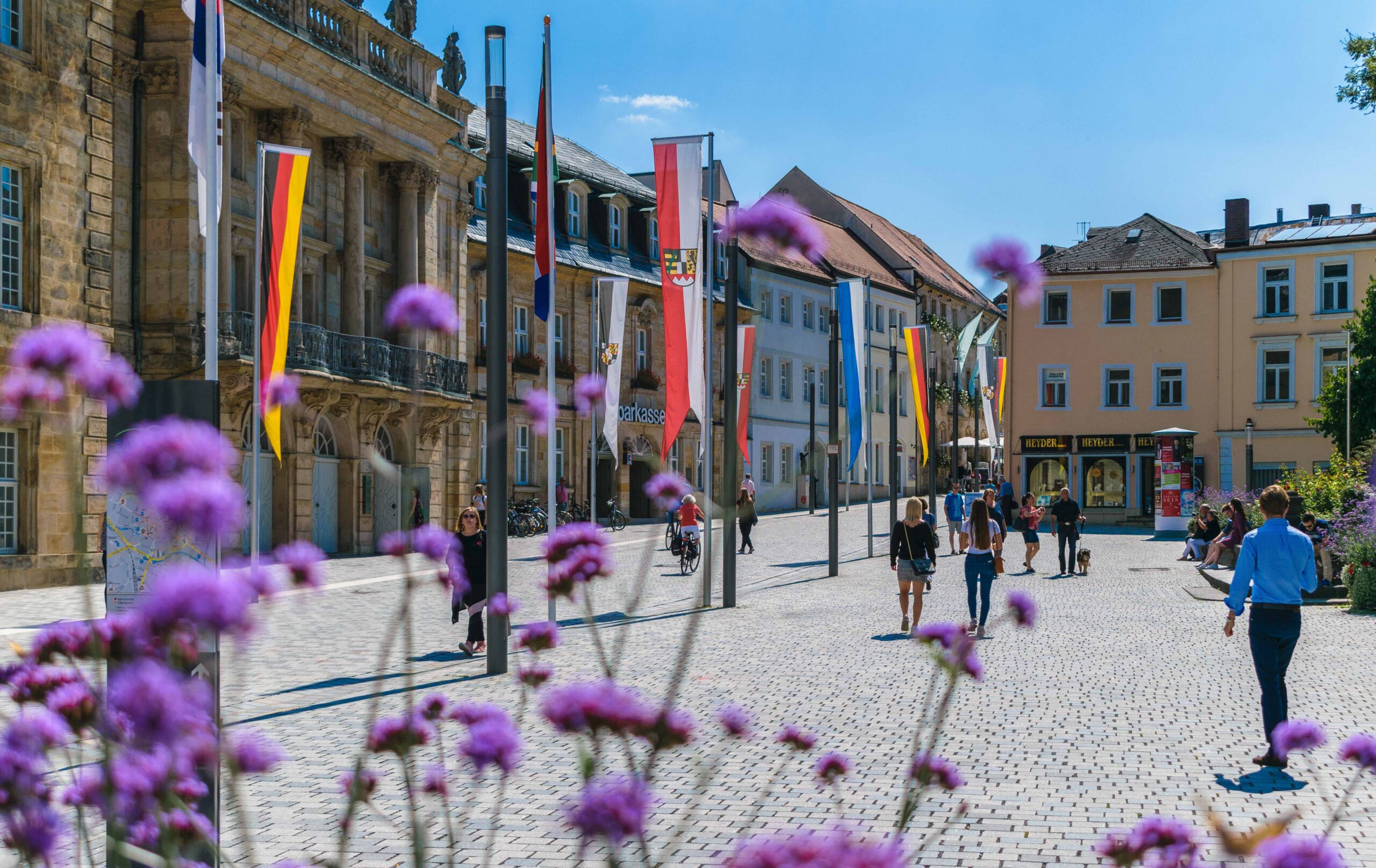 Von dort aus geht es hinauf in die Bergstadt, wo du den majestätischen Dom besichtigst. In der Nähe findest du auch die Alte Hofhaltung und die Neue Residenz, die dir einen Einblick in die fürstbischöfliche Geschichte Bambergs geben.