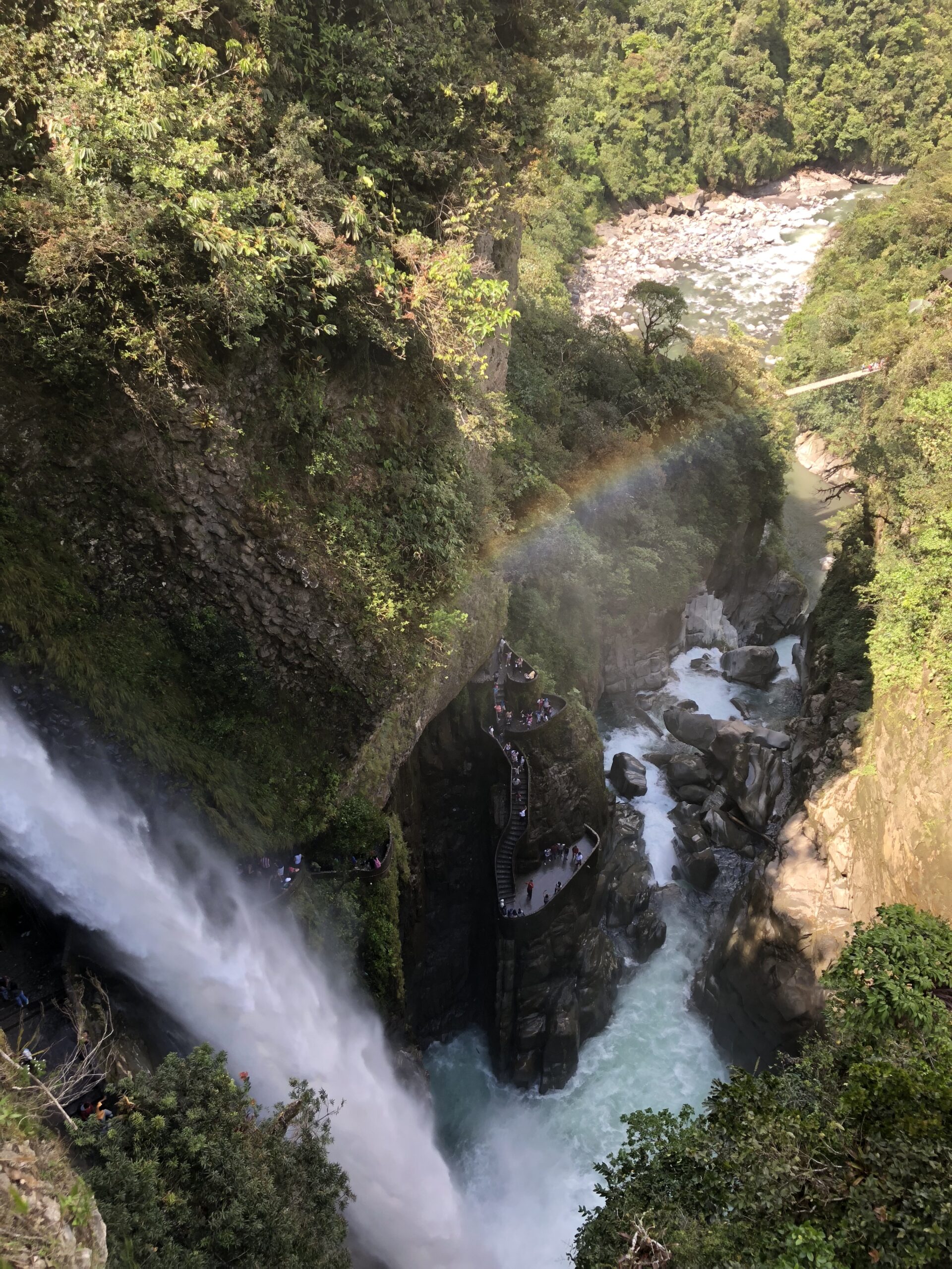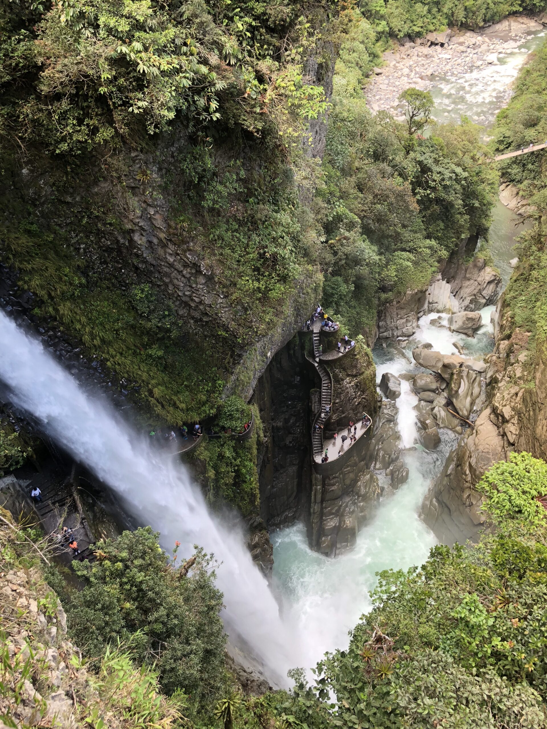 Am Morgen führt Sie Ihr Ausflug entlang der beeindruckenden Route der Wasserfälle durch die Pastaza-Schlucht. Am Fluss Río Verde unternehmen Sie einen kurzen Spaziergang zum imposanten Wasserfall „Pailón del Diablo“ (Teufels-Schlucht). Auf der gegenüberliegenden Seite des Flusses besuchen Sie die Schaukel am Baumhaus „Casa del Árbol“, von der aus Sie einen atemberaubenden Blick auf die umliegende Landschaft genießen können.