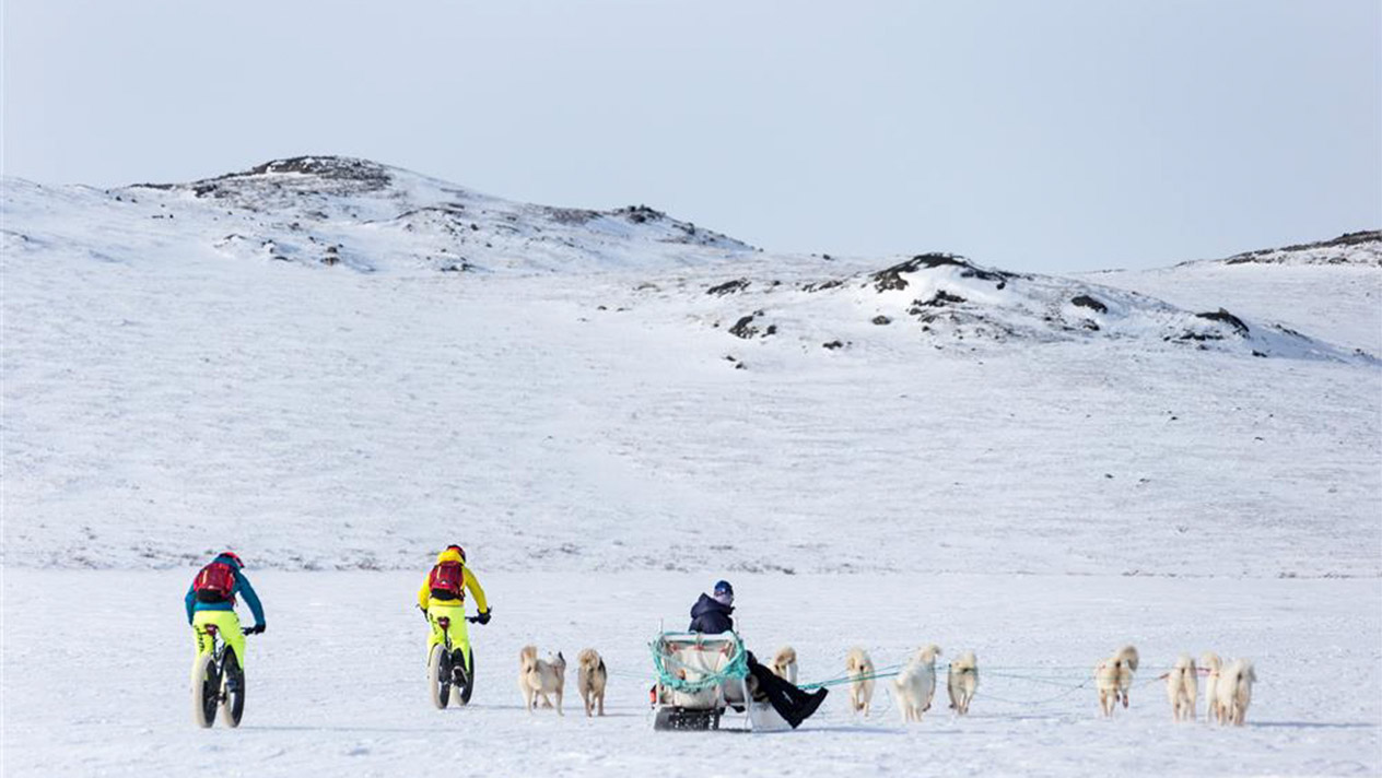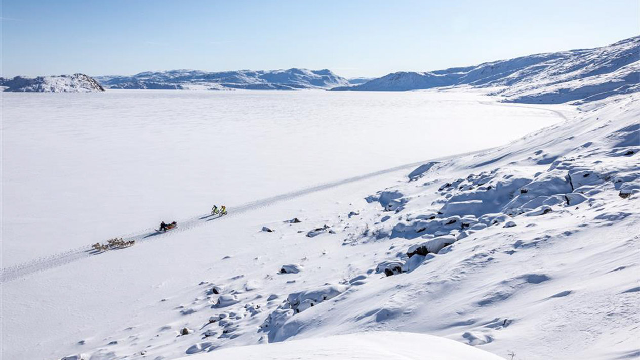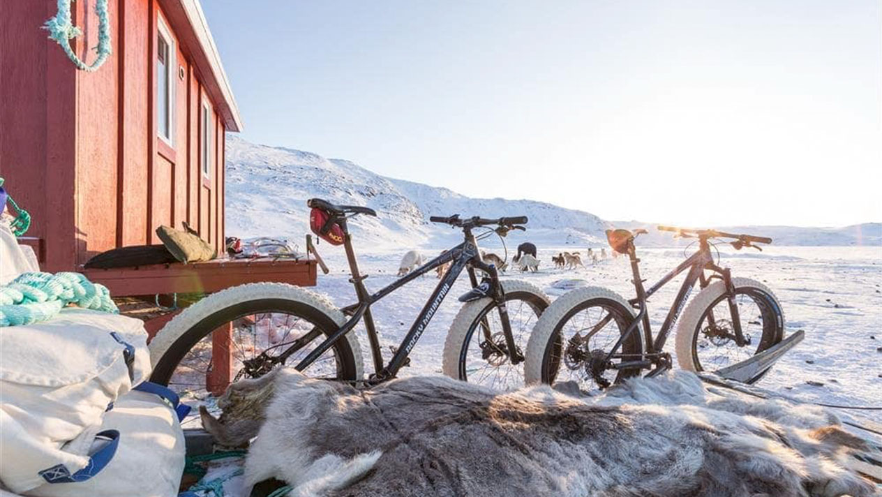 Du hast das Gefühl, schon alles erlebt zu haben? Dann ist Fatbiking durch das ewige Eis in Grönland genau für dich! Mit Fatbikes aus der Schweizer Bikeschmiede «Transalpes» fahren wir den Arctic Circle in Grönland. Umgeben vom ewigen Eis des Russel Glaciers durchqueren wir einen Teil Grönlands. Eine absolute Pioniertat, eine Reise, die es so noch nicht gegeben hat. Hier gehörst du zu den ersten Menschen der Welt, die dieses Unterfangen wagen! Wir fliegen, mit kurzem Zwischenstopp in Kopenhagen, nach Grönland. Schon die Ankunft im 400-Seelendorf Kangerlussuaq ist abenteuerlich. Wie oft landet man schon auf Schnee und Eis? Gut, dass unsere Fatbikes bereits vor Ort auf uns warten und das umständliche Gepäckschleppen wegfällt. Ein Expeditionsbus bringt uns zum Russel Glacier. Das ewige Eis bietet eine imposante Kulisse, die uns den Atem raubt: Mehrere 100 Meter dickes Eis endet hier, wo heute unsere Etappe beginnt. Während der ganzen Reise begleitet uns eine tolle, lokale Crew. Schneemobile transportieren Gepäck und Nahrung. So sind wir gut gerüstet für die kommenden fünf Tage auf dem Arctic Circle Trail. Aus logistischen Gründen nehmen wir gleich zu Beginn die 60 km lange Königsetappe unter die Räder. Auf dem zugefrorenen Fjord geht es zuerst gemächlich, später leicht coupiert vorwärts. Die nachfolgenden Etappen sind mit 19 bis 37 km relativ kurz und gut zu bewältigen, zwei strenge Anstiege bringen uns jedoch ins Schwitzen.