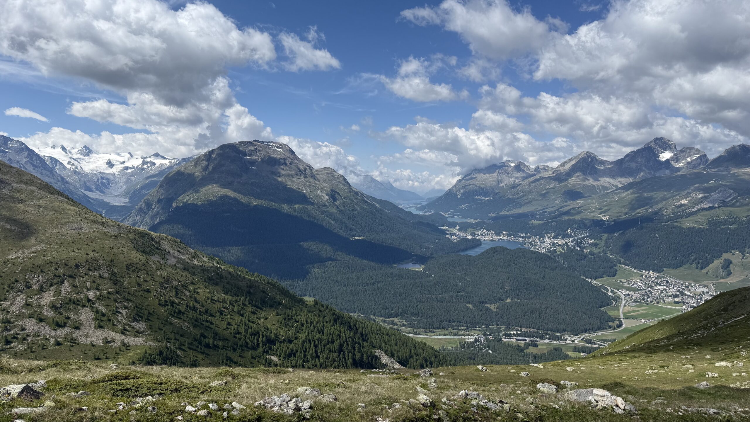 Mit dem Zug und Bus geht’s von Pontresina nach Bever. Von hier startet die heutige Bergtour. Das Val Champagna ist ein kleines Naturjuwel – ein abgeschiedenes Seitental, das sich oberhalb von Bever versteckt und mit seiner Ruhe und Ursprünglichkeit verzaubert. Wer diese Wanderung unternimmt, erlebt das Engadin von seiner stillen, authentischen Seite. Der Weg beginnt beim idyllischen Lej Gravatscha. Von dort führt ein gut markierter Bergweg sanft ansteigend in das Tal hinein. Schon nach wenigen Minuten wird es ruhig: Lärchenwälder, ein plätschernder Bach und weite Wiesen begleiten den Weg. Je weiter man aufsteigt, desto eindrucksvoller wird die Landschaft. Das Tal öffnet sich, die Vegetation wird alpiner, und die Aussicht zurück ins Oberengadin immer grossartiger. Die Atmosphäre ist einzigartig – man hört fast nur die Natur.