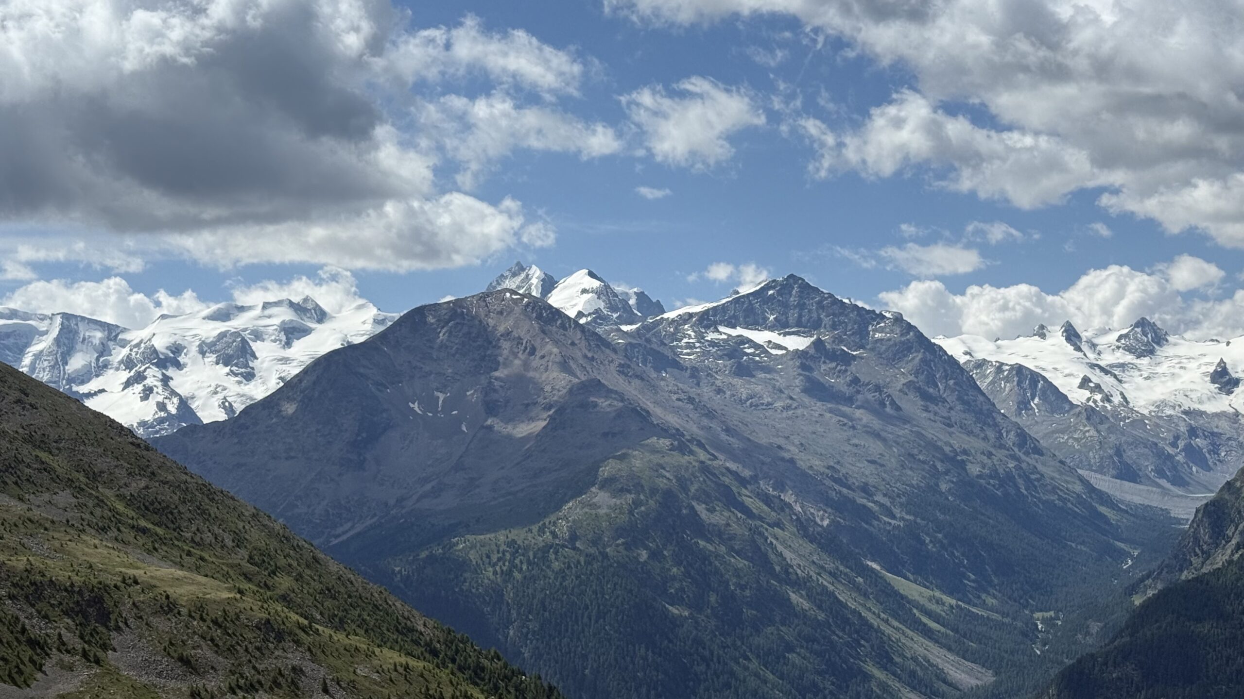 Von Pontresina geht es mit Bus und Bahn nach Surlej und weiter mit der Corvatschbahn zur Mittelstation Murtèl. Hier beginnt die Wanderung bereits mitten in der Bergwelt – ohne langen Aufstieg. Ein gut angelegter Panoramaweg führt in rund einer Stunde zur Fuorcla Surlej. Oben öffnet sich der Blick auf die gesamte Berninagruppe: Piz Bernina, Piz Roseg, Biancograt und die mächtigen Gletscher. Ein perfekter Ort für Fotos und eine kurze Pause.